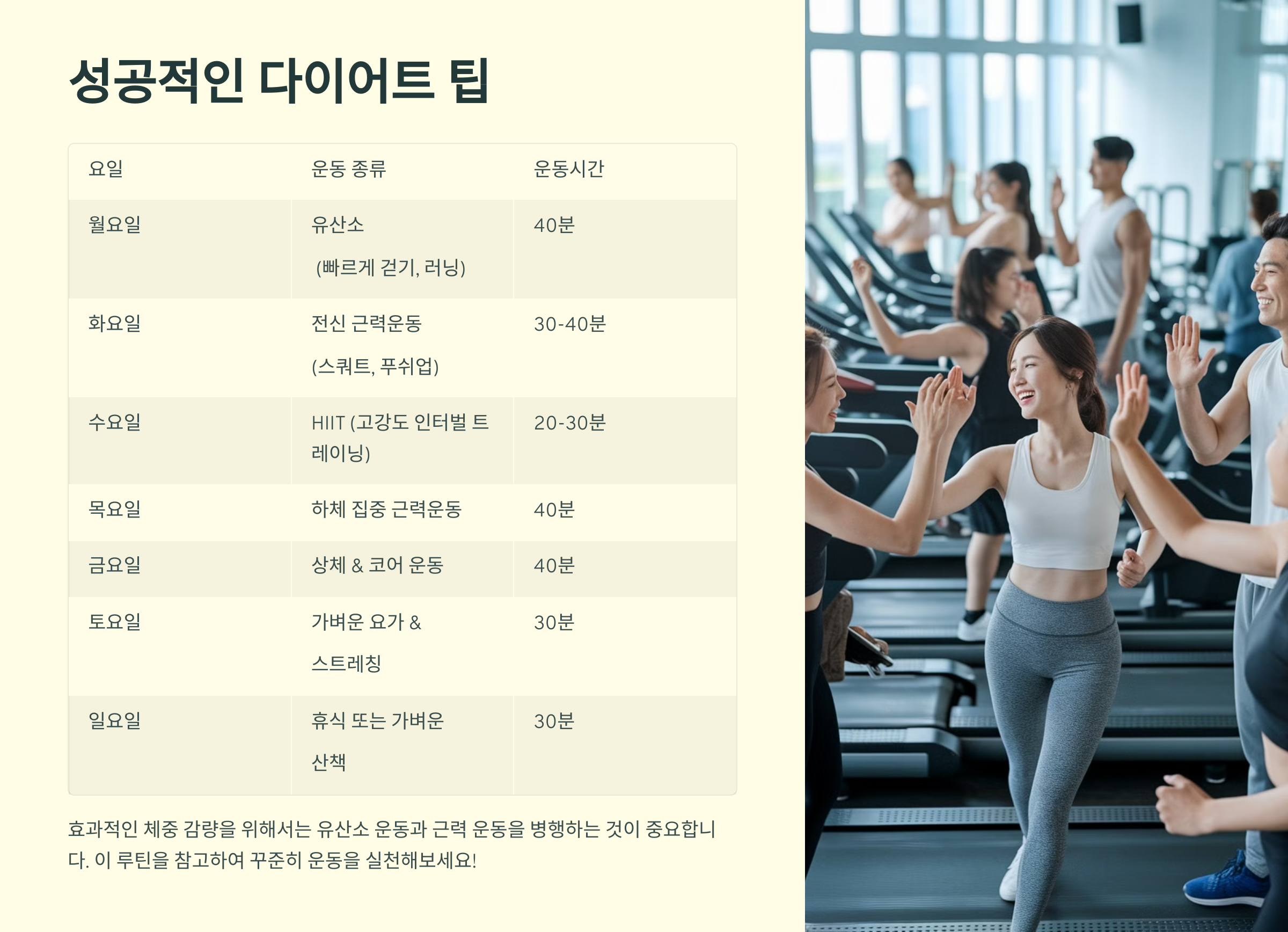 ✅ 유산소 & 근력 운동을 적절히 섞어야 지방 감량 + 근육 유지 가능!