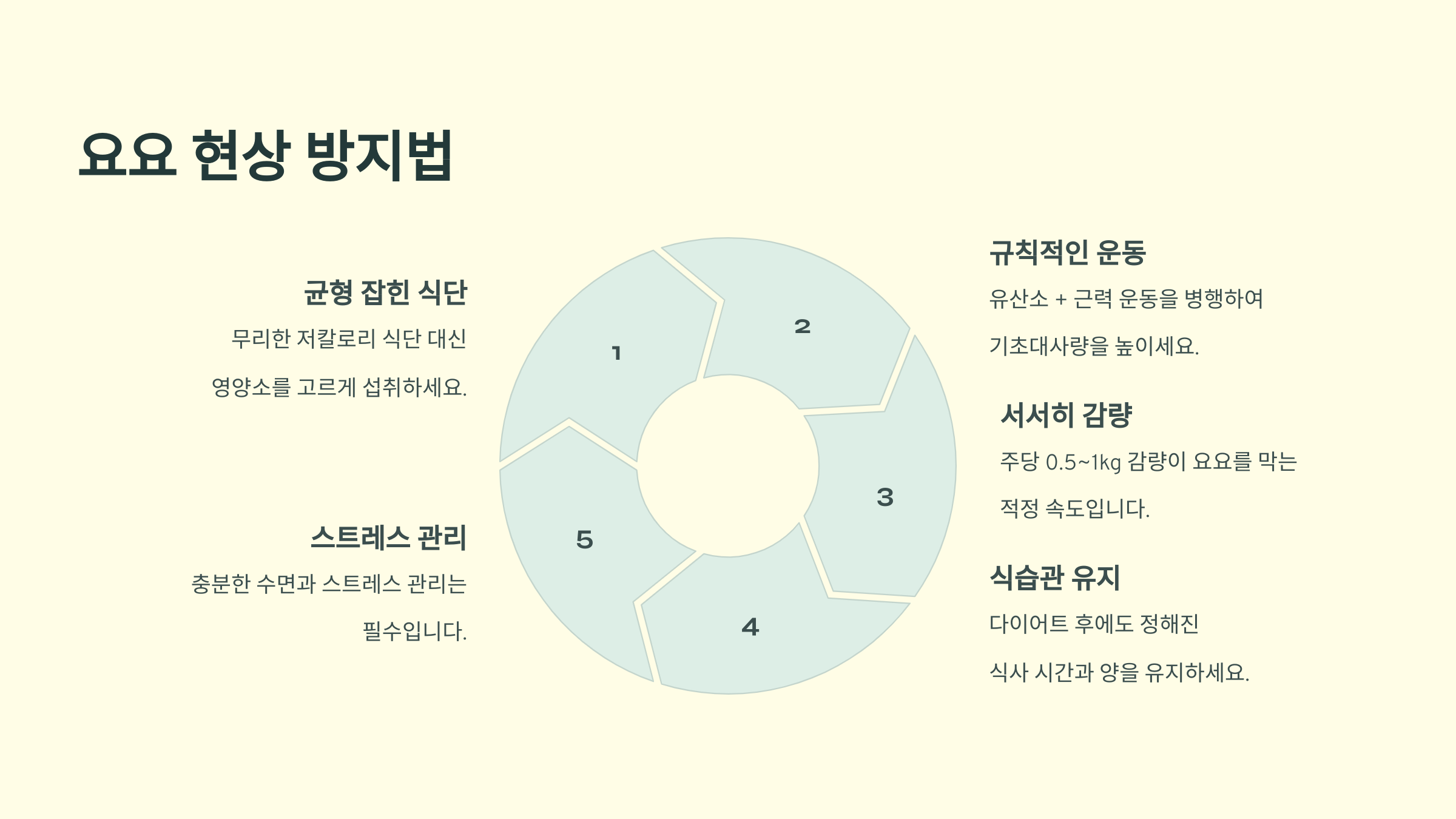 요요를 막기 위해서는 단기적인 다이어트가 아닌, 장기적인 생활 습관 개선이 필요합니다.