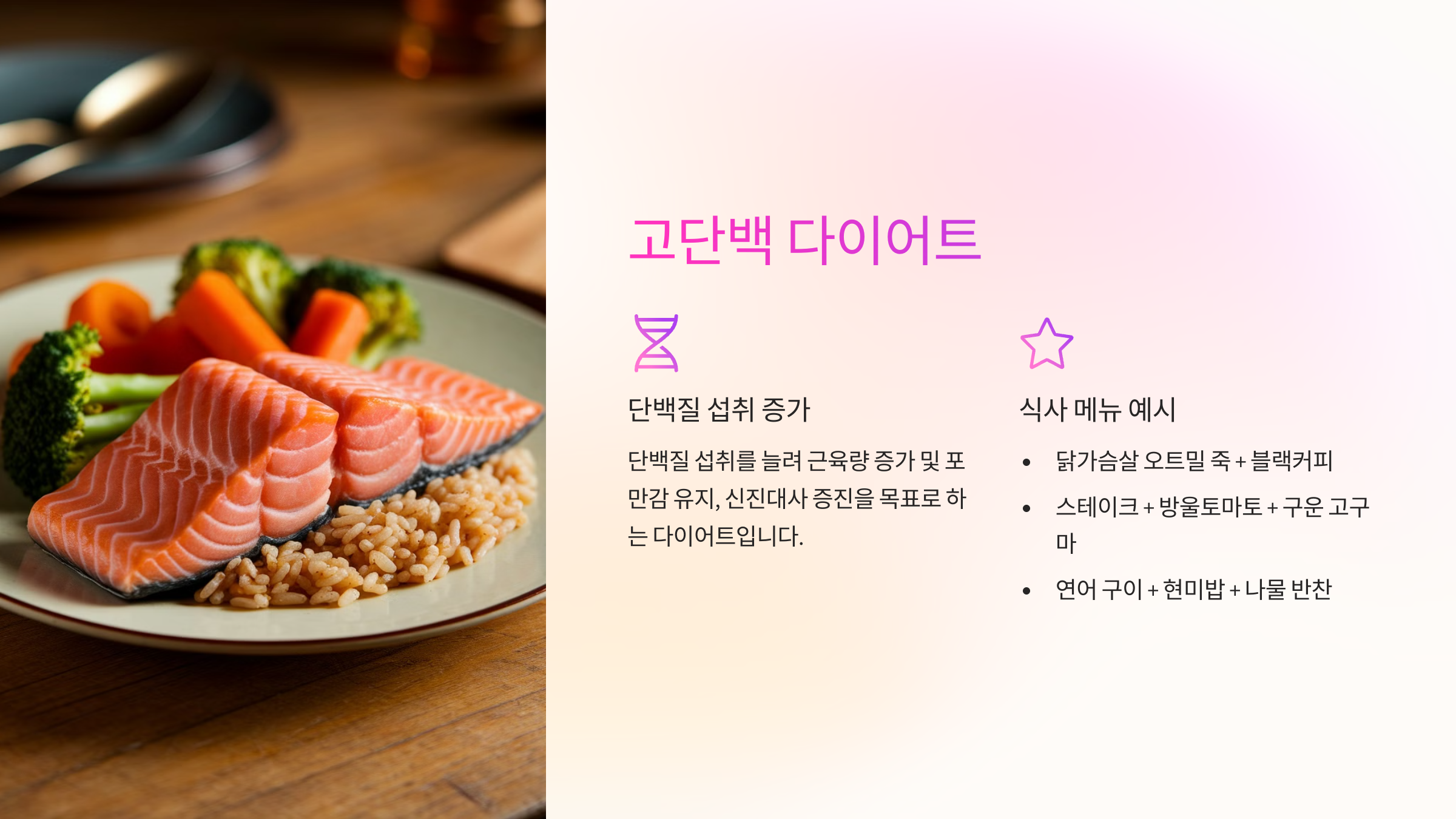 단백질과 채소를 중심으로 균형 잡힌 식단을 유지하세요.